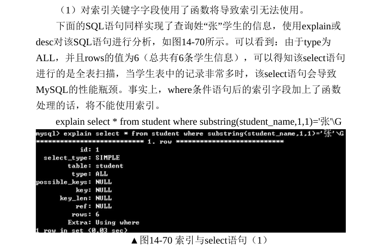 Mysql SELECT查询语句索引在以下情况下不能使用